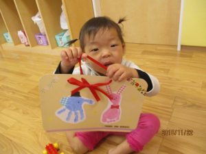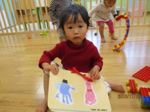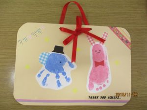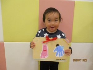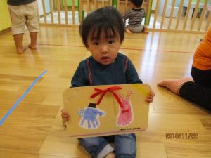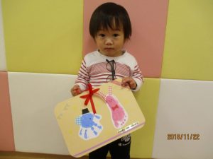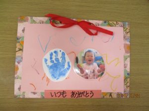 2歳児さんが代表で「いつもありがとう!!」と言ってプレゼントを渡してくれましたヾ(o´∀`o)ノ