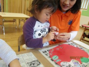 「指先でのりをぬりぬりぺったん