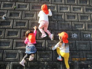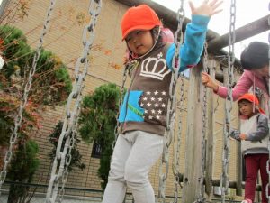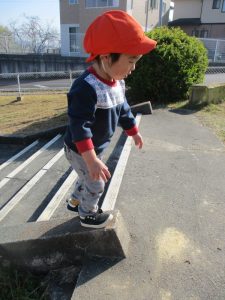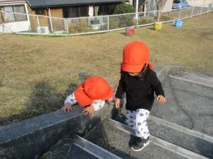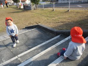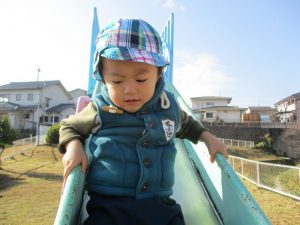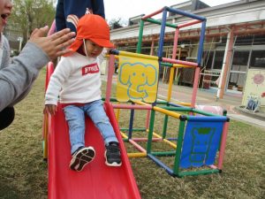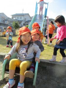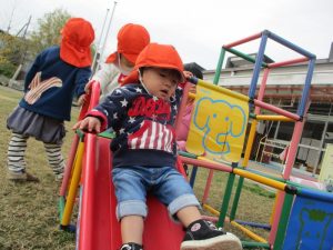 保育園の園庭には遊具が無いので、子どもたちも大喜びで『滑り台へGO