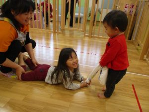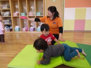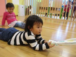 0歳児さんは、まだ少し難しいのでマットを使って遊びました(≧▽≦)