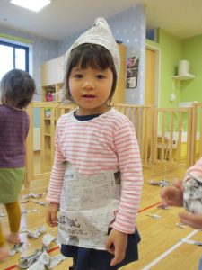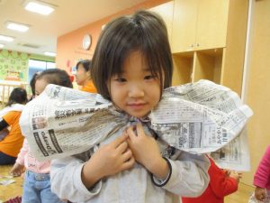 身近にある新聞紙を使って、「新聞遊び」をしました!