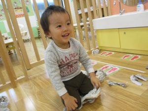 勢いよく「ビリビリ~」と破いたり・破いたりものを両手いっぱいに持って「いち・にの・さ~ん
