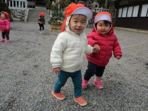 神社に着くと嬉しくて、またまた走り出しちゃう子どもたち