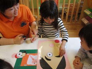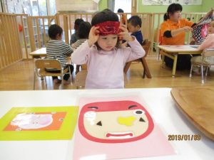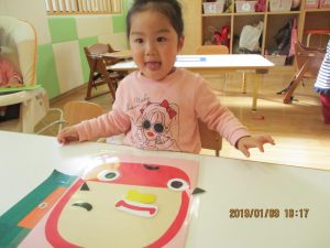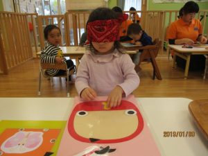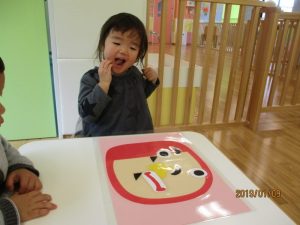 笑って福を招きましょう~と言う事で、『福笑い』をして遊びました(≧▽≦)