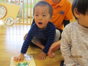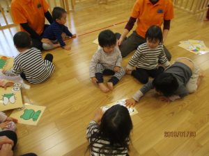 先ずは、保育士手作りの大型カルタで遊びました
