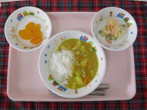 ☆幼児食★ ・カレーシチュー ・マカロニサラダ ・ごはん ・みかん缶