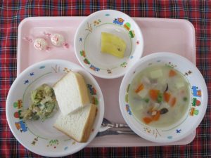★誕生日メニュー★ ・カレーシチュー ・切り干し大根のサラダ ・ごはん ・チーズ