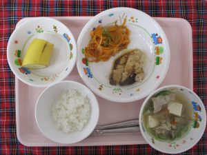 ★幼児食★ ・照り焼き魚 ・スパゲッティソテー ・豚汁 ・ごはん ・バナナ