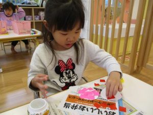 お次は、切った折り紙を画用紙に貼っていきます!!