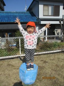 今日は散歩に行く予定をしていたのですが、天気が怪しくなり園庭で遊ぶことにしました。