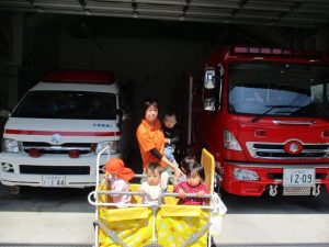 1歳児は前回行けなかった消防車を見に行って来ました!!