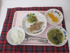 2019.04.26|給食ピックアップ 4月26日(金)のお給食(≧▽≦) ?離乳食? ・そぼろ煮 ・おかか和え ・みそ汁 ・ごはん ・オレンジ ★幼児食★ ・しょうが焼き ・もやしのナムル ・みそ汁 ・ごはん ・オレンジ 前へ 次へ