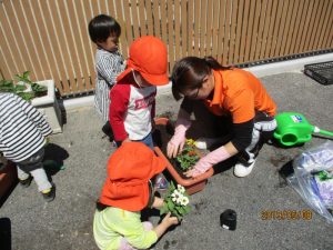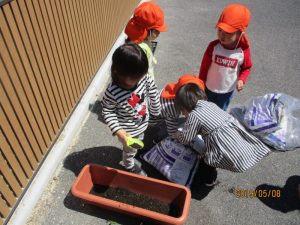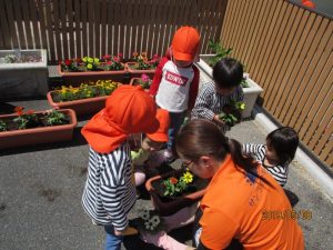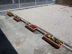 更に保育園を花でいっぱいにしようということで、園庭の砂場の周りに花を植える事に!