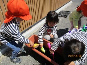 毎日2歳児さんを中心に保育者と一緒に水やりをしてくれています