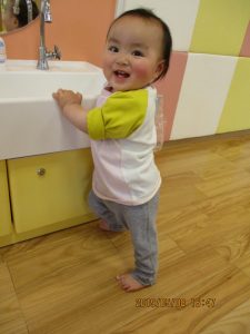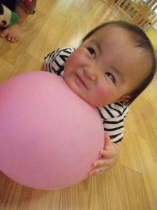 0歳児のお友達は、いつも誰に対しても笑顔でニッコリと笑ってくれます![]()