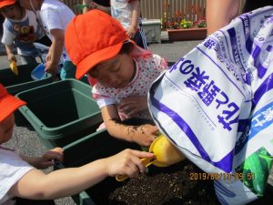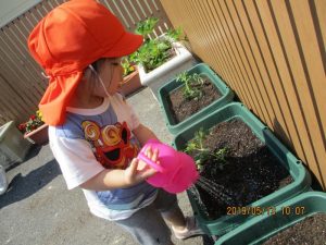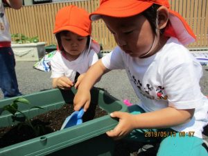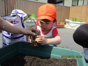 先週はプランターにの花の苗植えを手伝ってくれた2歳児さんですが、