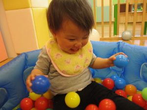 たくさんのカラフルなボールに大喜びで遊ぶこども達!!