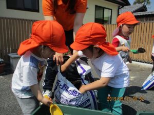 みんな慣れた手つきで次々に土を入れてくれました!!