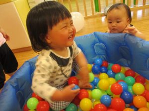 たくさんのカラフルなボールに大喜びで遊ぶこども達!!
