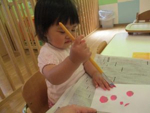 0歳児のお友達は、いつも誰に対しても笑顔でニッコリと笑ってくれます![]()