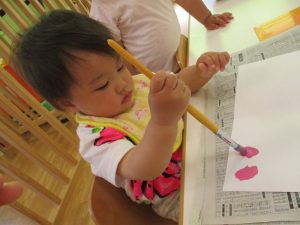 絵の具の付いた筆を画用紙の好きな所に模様を付けていきます!!