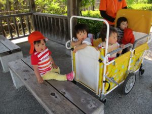 行きと帰りはお散歩カーに乗って移動をするのですが、