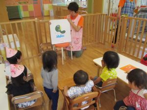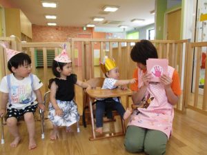 誕生日カードをもらった後は、大型絵本を読んでもらい、