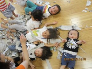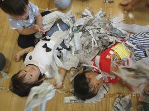 破いた新聞を『1.2.3』で上に向かって撒いたり、