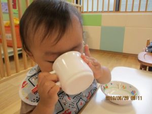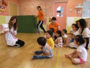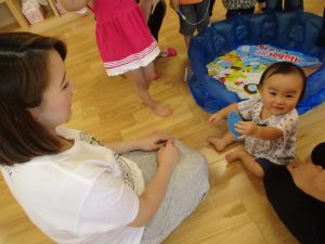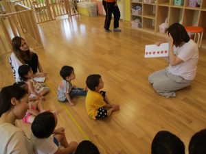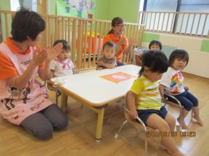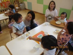 朝の会やおやつの時間では、お母さん先生がいてくださるので
