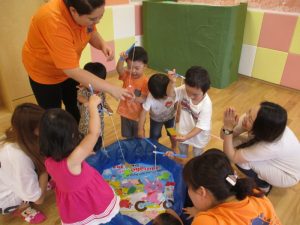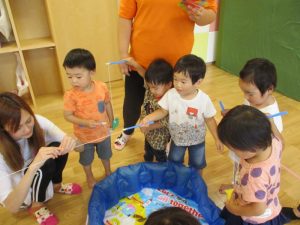 みんなで『HeIIo HeIIo』の歌を歌った後は英語でお魚釣りゲームをしました(≧▽≦)