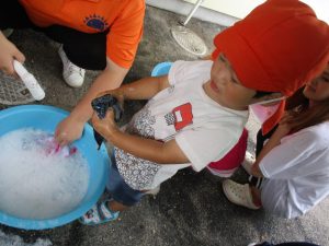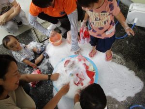?ぐみさんと?ぐみさんは、園庭で泡遊びをしました(≧▽≦)