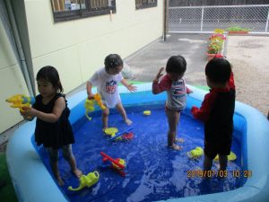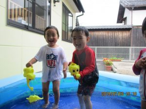 今日はたので、園庭で水遊びを楽しむ事ができました!!