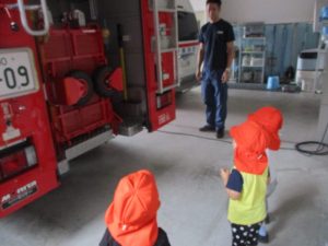 保育園の近くの消防署まで散歩に行った時の様子です。