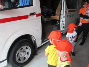 子ども達、本物の消防車と救急車に大喜び