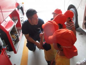 子ども達の質問に優しく答えて下さった消防士のお兄さん・・