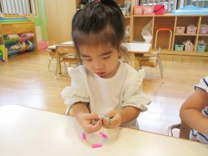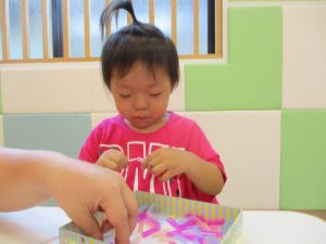 保育園では動きのある遊びだけでなく、座ってできる静の活動も多く取り入れていて、
