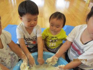 初めての小麦粉粘土にも抵抗することなく