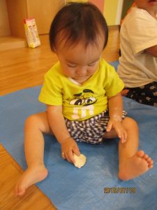 今回は、保育園で一番小さいクラスのお友達?組さんの様子をお伝え致します。