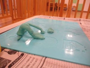 粘土は、子ども達の思った形に何度でも作り直すことができ、作ったもので見立て遊びもできます。