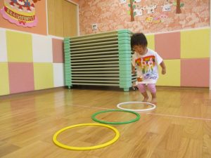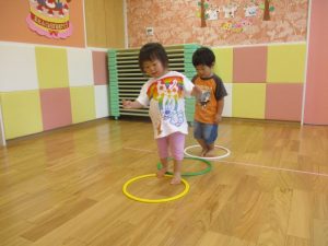 ?さんのように両足を揃えてフープの中をジャンプ!!