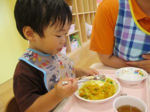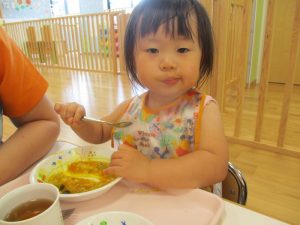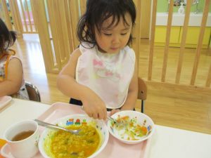 沢山遊んだ後は、お楽しみの給食の時間![]()