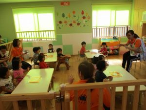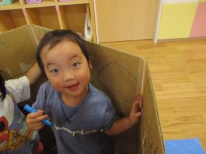 今日は『英語』ですが、『リトミック』や『体操』の3つのカリキュラムを曜日ごとに行い、