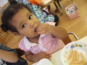 先ずは子ども達の朝のお楽しみのおやつの時間!!
