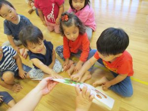 保育者の『今日は誰の声が元気かな~』という声掛けに・・