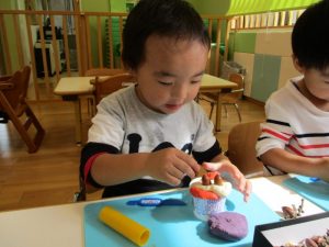 丸めたり・伸ばしたりして思い思いに形を作っていきます(≧▽≦)