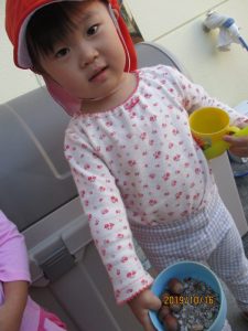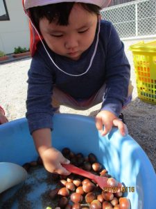 また、園庭の砂場ではどんぐりを使っての遊びで大盛り上がりです!!