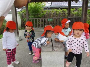 0・1歳児?組と?組さんは、リトミックをした後で園周辺の散歩に出掛けました