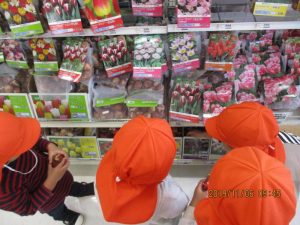 お店に行く前に『何色のチューリップがいい?』と子ども達に聞いてみると、