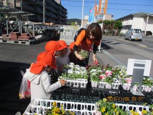 園庭のプランターや花壇には色々な花が咲いていますが、