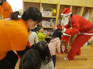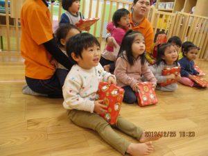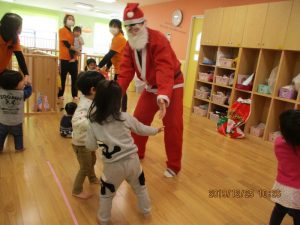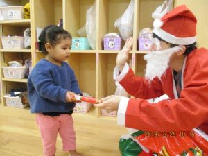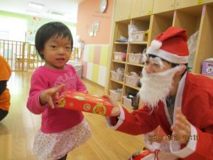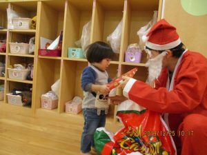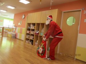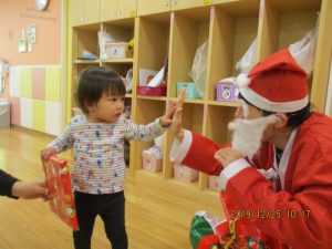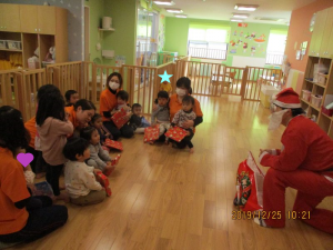 25日のクリスマスの日に?さんが保育園に来てくれ様子をお伝え致します。